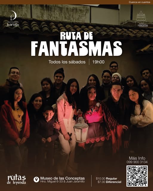 El Museo de las Conceptas y el Colectivo Barojo te invitan a la Ruta de Fantasmas, un recorrido teatral lleno de misterio, leyendas y tradición cuencana.